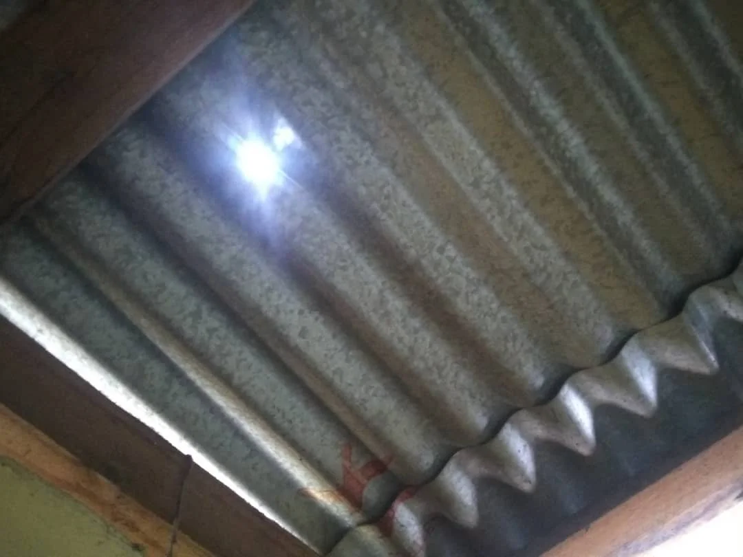 The beginning of this week we were able to get the needed material to repair it for them. The “Boss” to replace the tin was rather expensive as the roof is actually about three stories off the ground. It’s because these little houses are made to be stacked on top of each other.